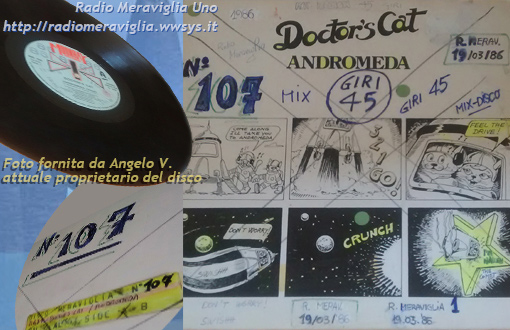 Disco Meraviglia n°107 (Wonder Disc dal 19/03 al 25/03/1986) Gruppo: *Doctor's Cat* - singolo: *Andromeda*. Prodotto e mixato da A. Martinelli e F. Gatto. Scritto da A. Martinelli, e S. Zanini. Al mometo non siamo stati in grado di recuperare ulteriori informazioni.
