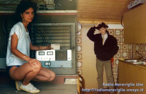 Questa vuole essere solo una veloce carrellata su quelle che erano le apparecchiature di °°Radio Meraviglia°°. Nella foto di sinistra (sulla Montagna D'Aranco "Monte Aronne"), Paola DJ e a lato in basso il ricevitore (riceveva il segnale codificato dallo studio della Radio), appoggiatovi sopra il trasmettitore primario (l'ultimo in dotazione). Nella foto di destra Graziano DJ (Titolare), e in alto a destra il trasmettitore che inviava il segnale codificato dallo studio della Radio al Monte "Aronne". Per visionare i trasmettitori precedenti e la loro storia, vedi la sezione "Quando è nata".